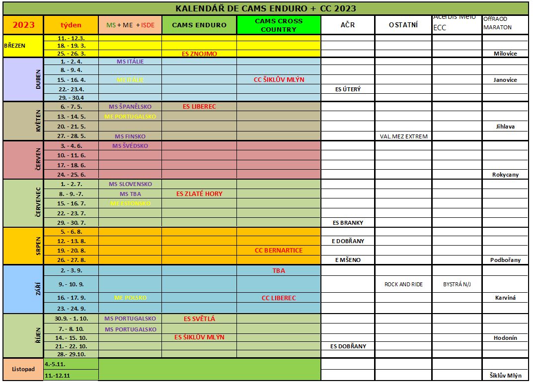 Kalendář Enduro CAMS 2023 2.2.2023