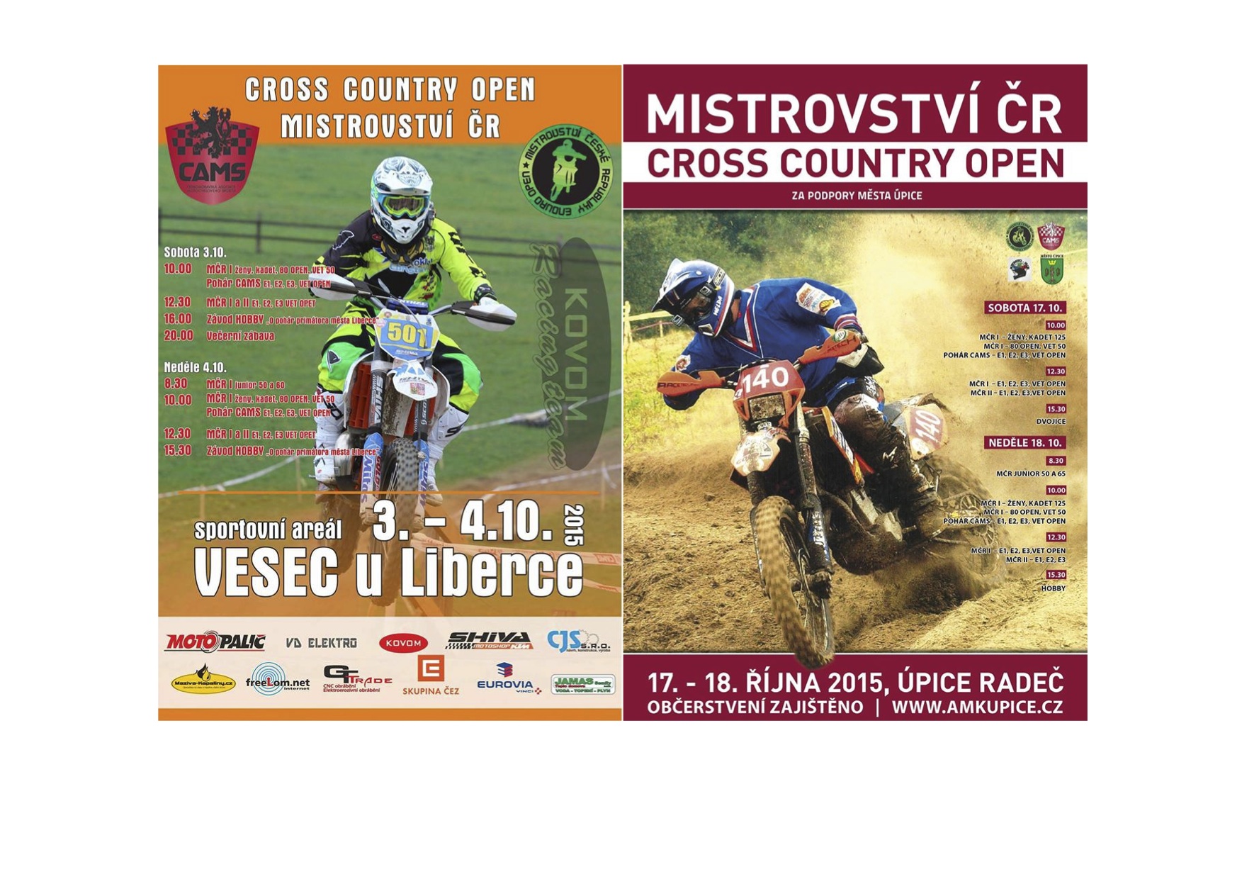 FINÁLE LETOŠNÍHO MČR A POHÁRU CAMS CROSS COUNTRY OPEN 2015 DO ÚPICE 17.-18.10.2015