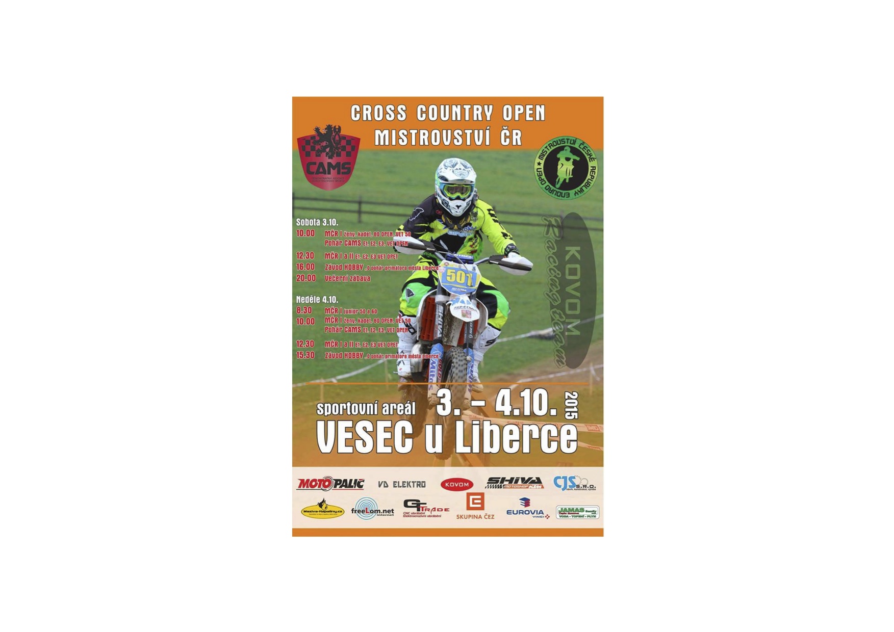 POZVÁNKA NA 4. DÍL MČR A POHÁRU CAMS CC OPEN 2015 DO LIBERCE - VESCE 3. - 4. 10. 2015