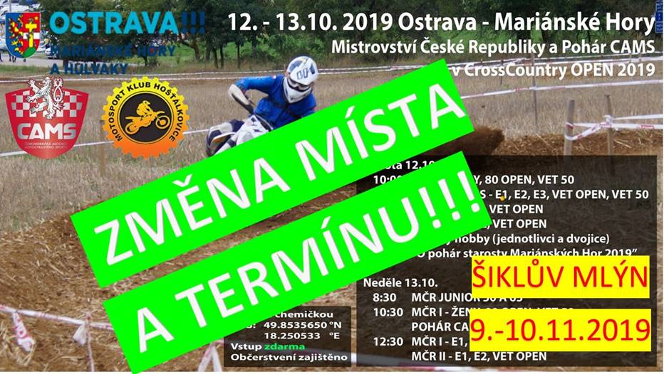 POZOR - ČTĚTE - SDÍLEJTE - CROSS COUNTRY LETOS V OSTRAVĚ NEBUDE!!! - ZMĚNA TERMÍNU I MÍSTA POSLEDNÍHO PODNIKU MĆR A POHÁRU CAMS CROSS COUNTRY OPEN 2019.