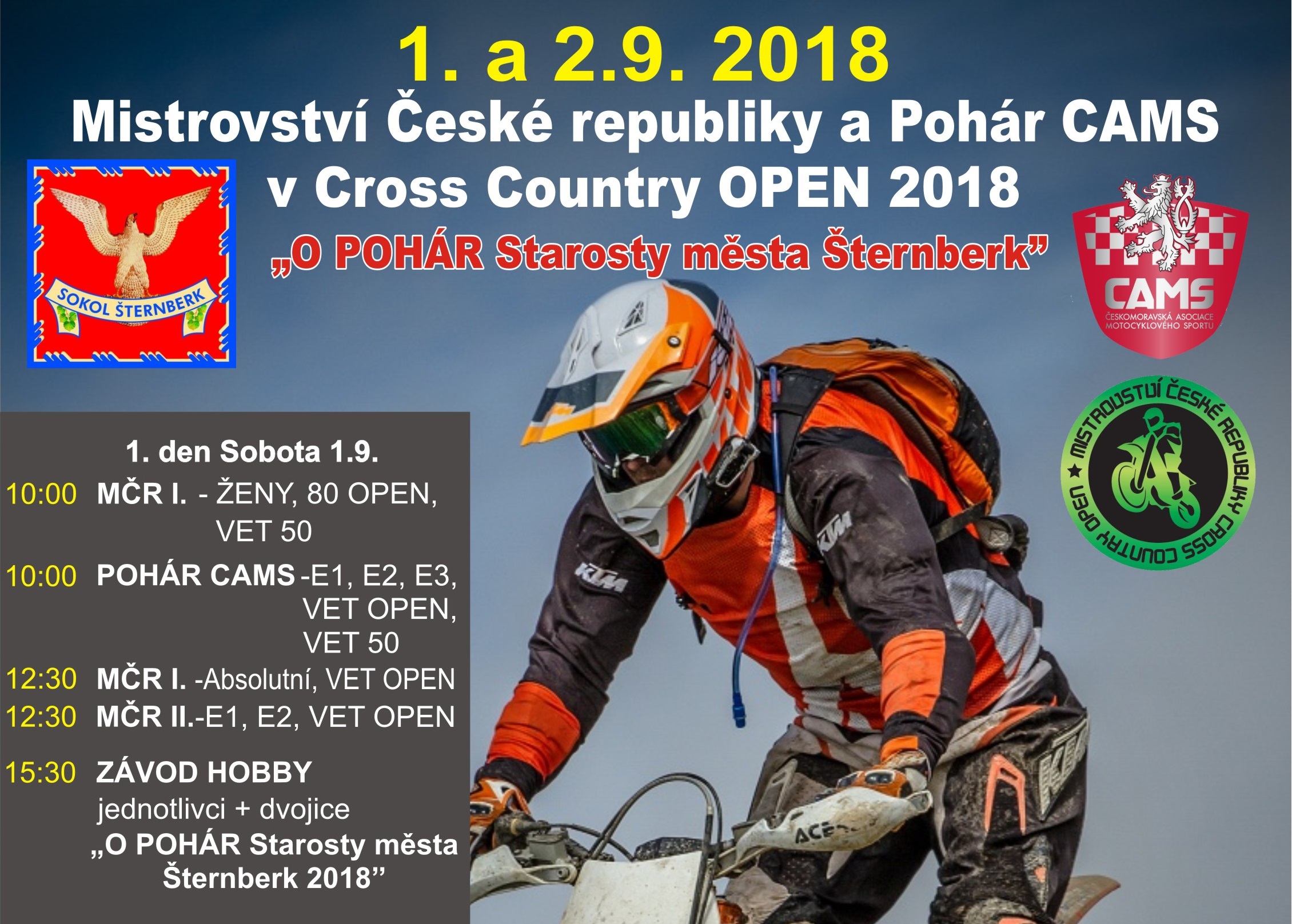6. DÍL MČR A POHÁRU CAMS CROSS COUNTRY OPEN 2018 SPOLU SE ZÁVODEM "O POHÁR STAROSTY MĚSTA ŠTERNBERK" STARTUJE JIŽ TENTO VÍKEND 1.- 2. ZÁŘÍ VE ŠTERNBERKU