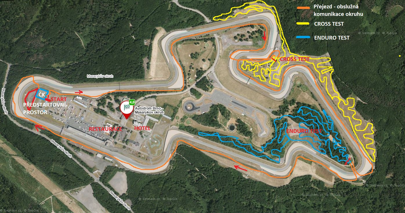 Místo konání enduro sprintu: Areál Automotodromu Brno