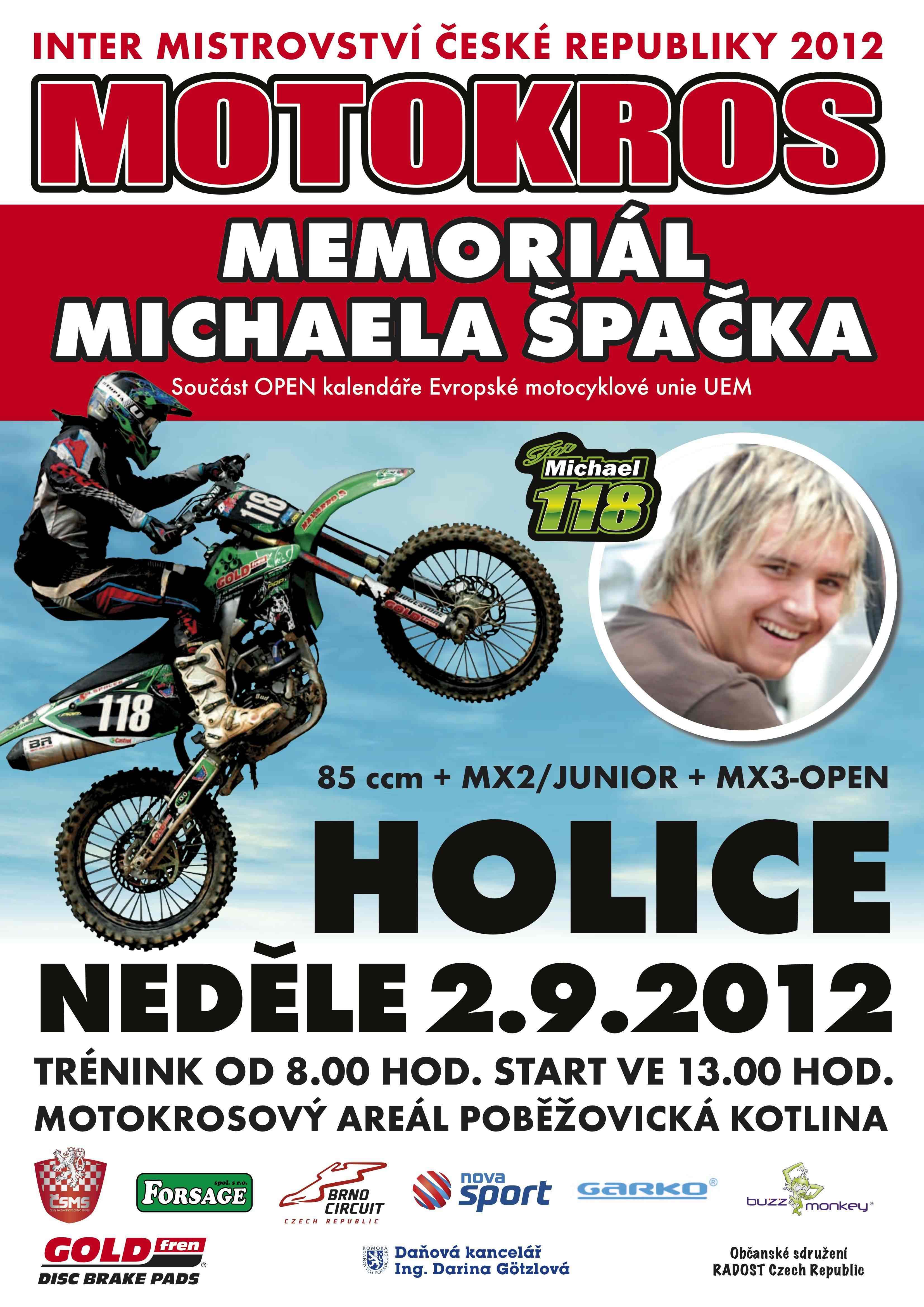 Uctít důstojně památku tragicky zesnulého mladého motokrosového jezdce Michaela Špačka chtějí ve vzájemné spolupráci jeho nejbližší s přáteli, příznivci i s evropskou motokrosovou špičkou. Stát by se tak mělo v rámci podniku "Memoriál Michaela Špačka – Inter mistrovství České republiky v motokrosu", a to první zářijový víkend v Poběžovické kotlině nedaleko východočeských Holic.
