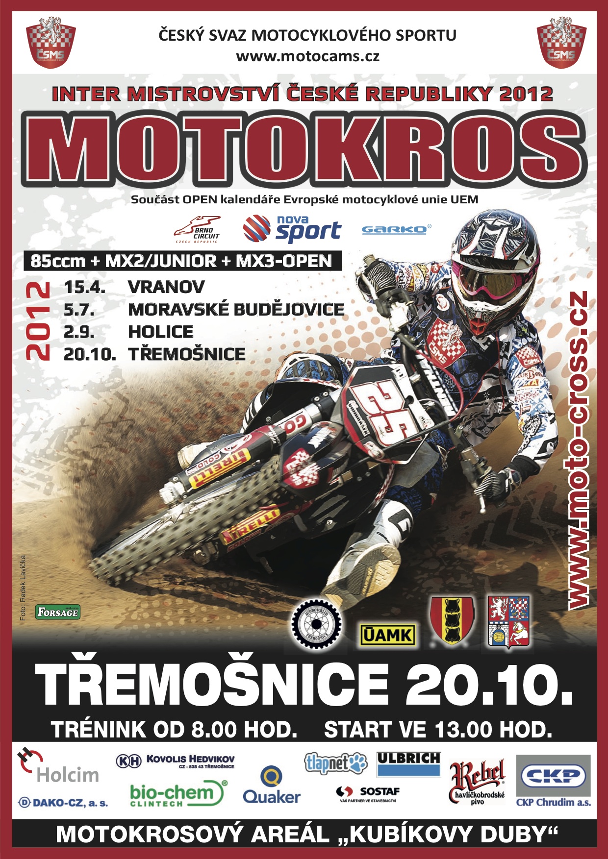 Do podvědomí veřejnosti se Třemošnice zapsala i motokrosovým závodištěm. Aktivně pracující místní automotoklub zachovává tradici motokrosových závodů, areál neustále vylepšuje a od televizních motokrosů dospěl až k pořadatelství finálového závodu mistrovství Evropy třídy 250 ccm. Děkuji vedení automotoklubu a všem jeho členům za aktivní propagaci města Třemošnice, všem divákům přeji hodnotný motoristický zážitek a závodníkům dobrou formu a co nejlepší úspěch.