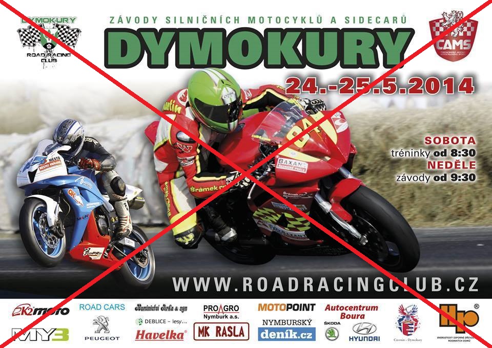 Závody silničních motocyklů na dymokurském okruhu "Mistrovství a přebor České republiky přírodní okruhy 2014" v termínu 24. - 25. 5. 2014 jsou ZRUŠENY!!!